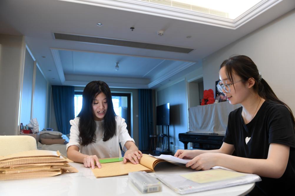 5月28日,在安徽省合肥市,一名大学生(右)在郁晓楠家中给她辅导英语。