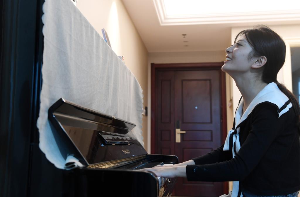5月27日,郁晓楠在位于安徽省合肥市的家中弹钢琴。