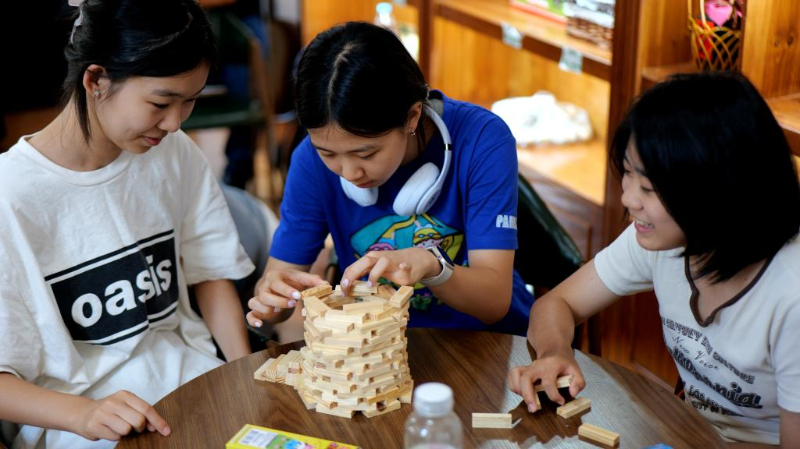 参与“长城营造社”的学生们体验古代建筑中的叠涩结构。受访者供图