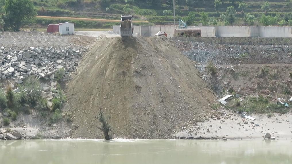 督察组连续多日蹲守发现,紧邻该弃渣场,每天都有重型卡车将弃渣直接倒入金沙江。该处现有约5000立方米弃渣,侵占金沙江岸线47米,占用河道500余平方米,严重破坏岸线和河道生态环境。