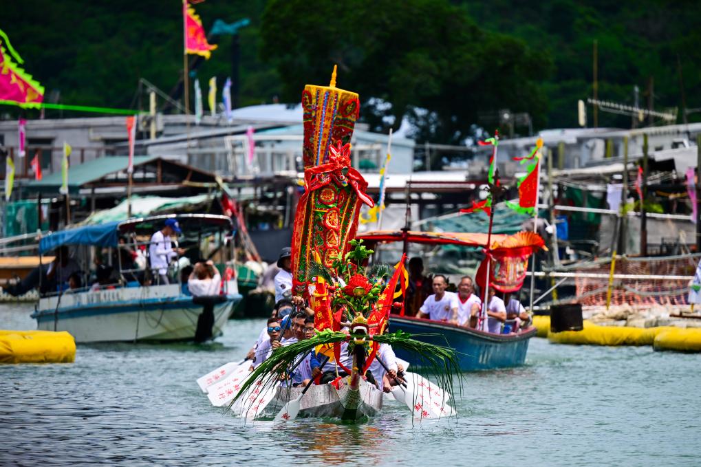 新华社香港6月10日电(记者阎月巧、禹丽贞、梁嘉骏)6月10日是农历五月初五端午节。当日,香港大澳举办龙舟游涌传统活动,迎接端午佳节。
