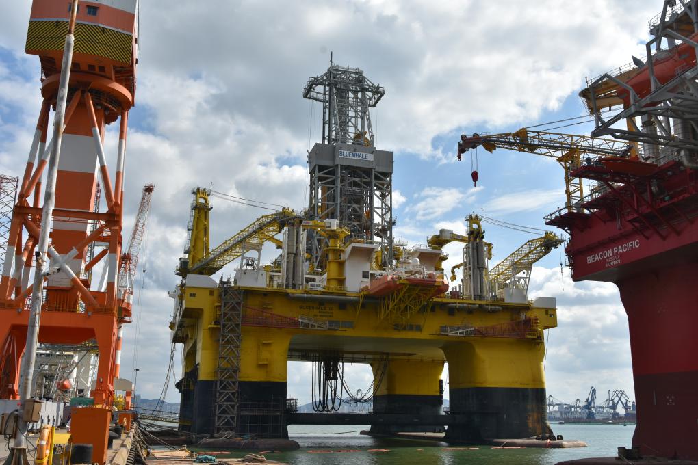 这是6月8日拍摄的超深水半潜式钻井平台“蓝鲸2号”。新华社记者丛佳鑫 摄