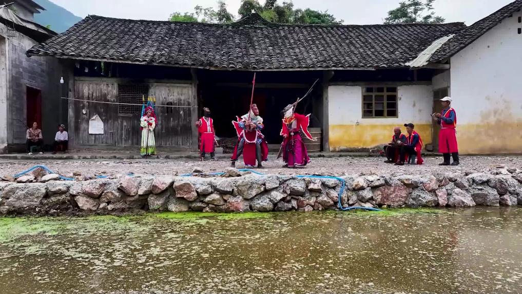 又是一年武陵山间水稻插秧季,在重庆市酉阳土家族苗族自治县铜鼓镇清泉村,水稻田间时时回响着极具地方特色的戏曲唱段,一群特别的非遗技艺阳戏(酉阳土家面具阳戏)表演者,往来于田间地头,他们忙时翻土培秧,准备着水稻插秧;闲时则舞枪弄剑,排演着表演剧目。这群活跃于田间地头的普通农民,用他们的方式演绎着面具内外的“双面人生”,也传承着这项唱响在田间地头的非遗技艺。
