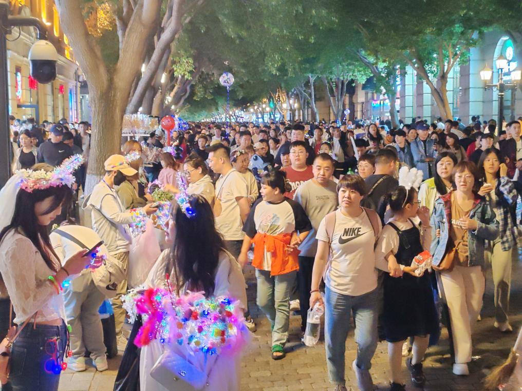 这是6月9日晚的中央大街。新华社记者 何山 摄