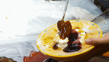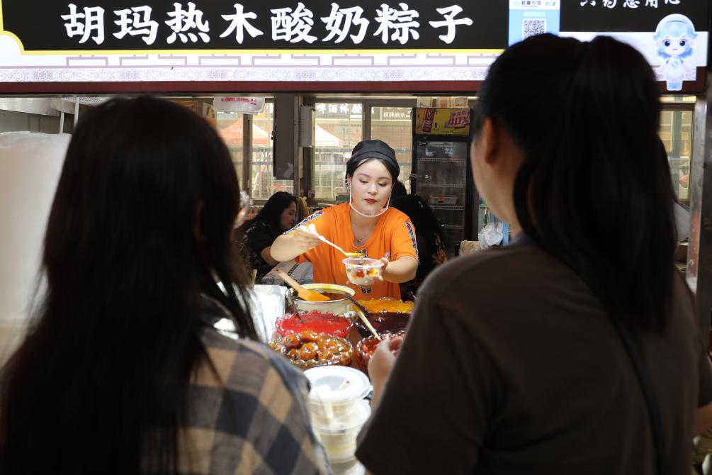 在和田夜市,顾客购买酸奶粽子,打包带走。