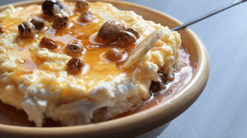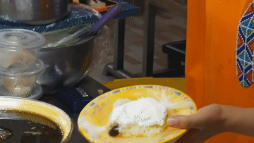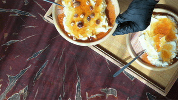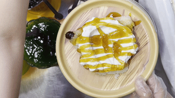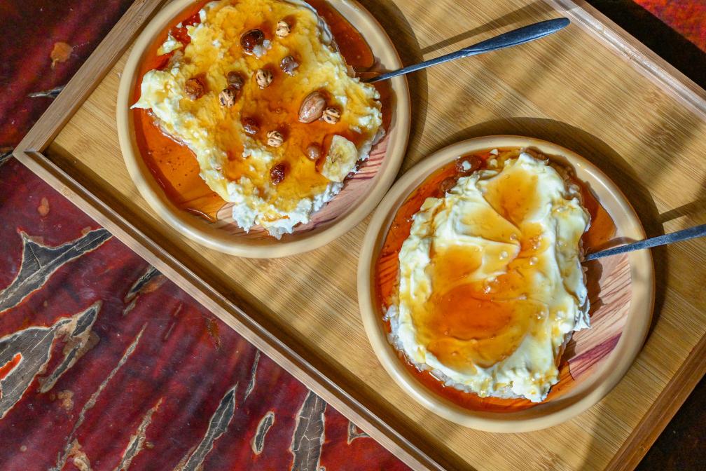 顾客在乌鲁木齐的一家甜品店准备品尝酸奶粽子。