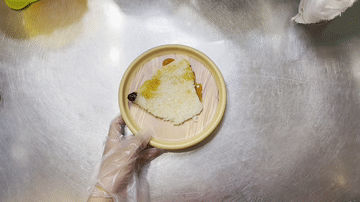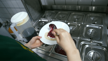 在北京一家餐厅,工作人员为顾客制作酸奶粽子。