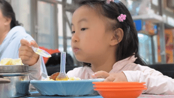 来自上海的小朋友在和田夜市品尝酸奶粽子。