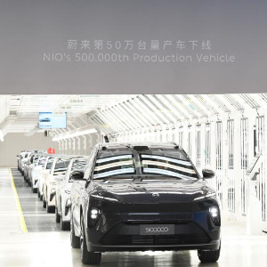 5月9日,在安徽省合肥市新桥智能电动汽车产业园蔚来第二工厂,蔚来第50万台量产车下线。新华社记者张端摄