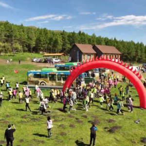 6月7日,游客在参加阿尔山登山季系列活动开幕式。新华社发