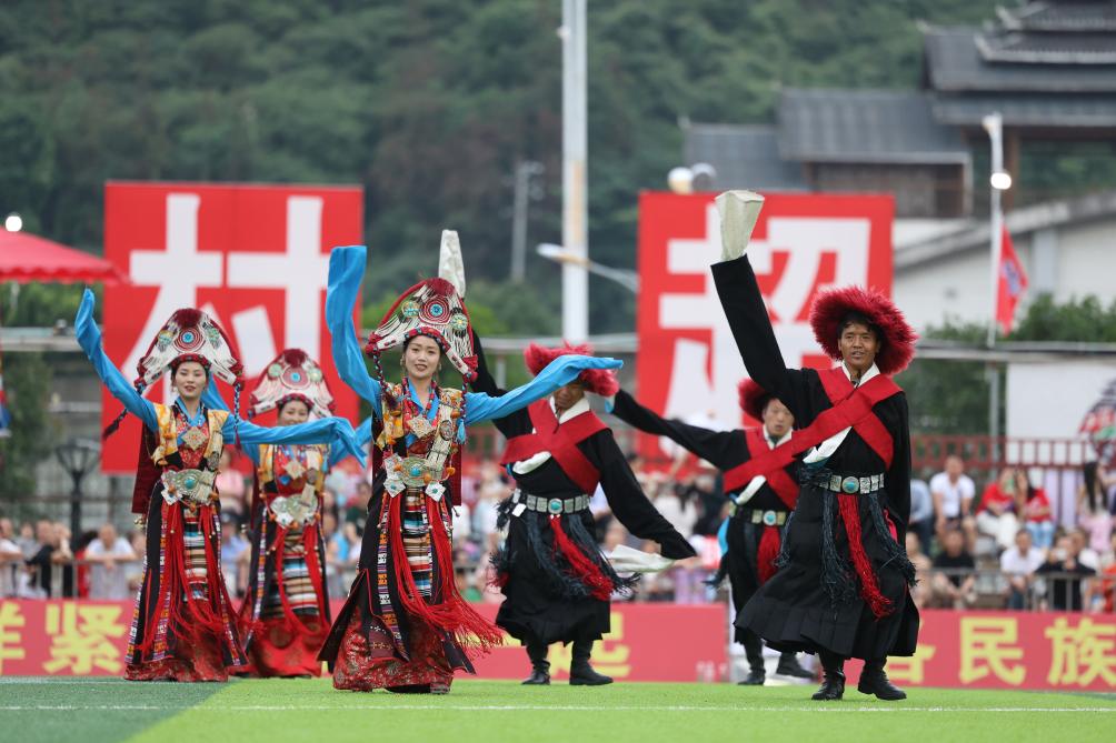 6月10日,演员在比赛间隙表演萨迦索舞。新华社记者 刘续 摄