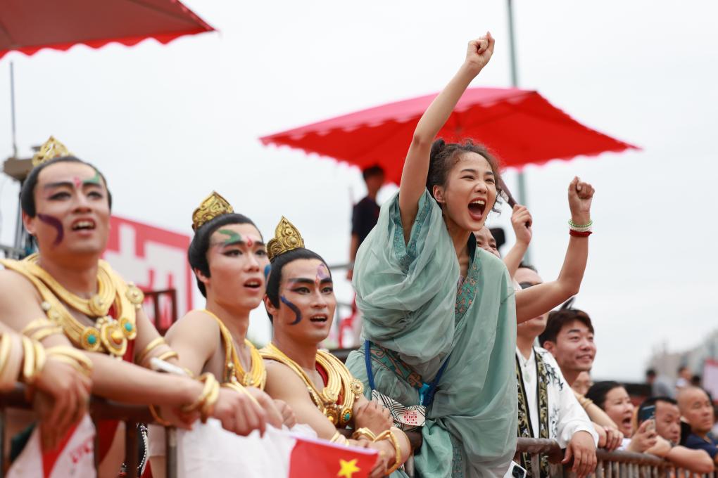 随着比赛的进行,由河南洛邑古城足球队啦啦队表演的《仕女蹴鞠图》、西藏日喀则市萨迦县古城艺术团表演的《萨迦索舞》、内蒙古额尔古纳乐队演奏的《唱起草原的歌》等10多个节目轮番上演,现场观众欢呼声、呐喊声一浪高过一浪。虽然嗓子哑了、腿站麻了,但大家热情不减。