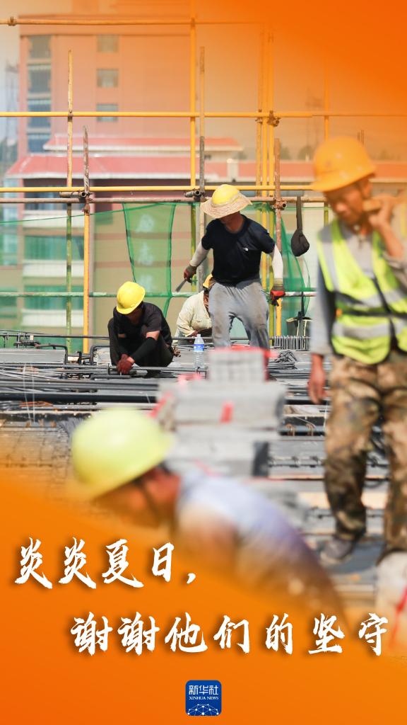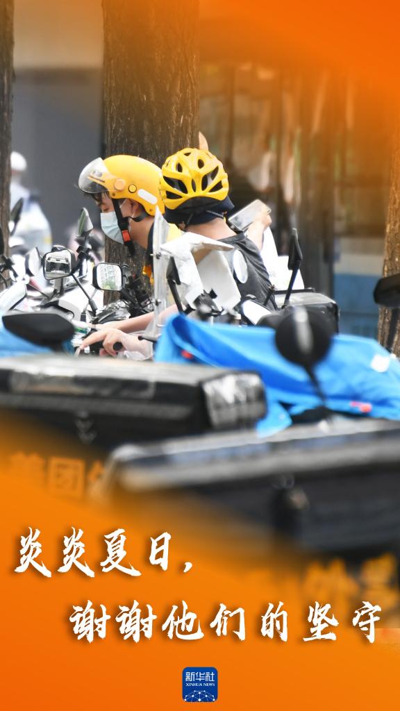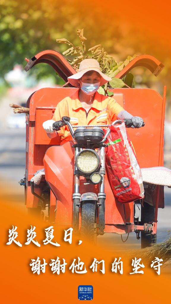 近日,北方多地迎来高温热浪,部分地区最高气温超40℃。环卫工人、外卖员、交警、建筑工人等劳动者无惧“烤”验,坚守岗位,一起向他们致敬!同时要提醒:做好户外防暑降温措施,通过合理安排工作时间、发放高温津贴等确保劳动者权益。(记者:任超 赵鸿宇)