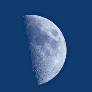这是2023年3月29日在天津南开区拍摄的一轮上弦月(特写)。(杨婧拍摄)
