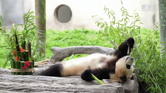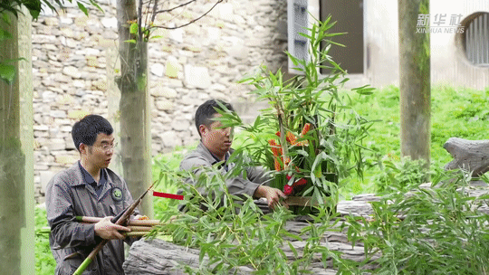 饲养员为“福宝”准备了丰盛的竹子蛋糕