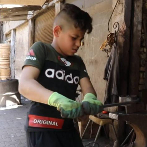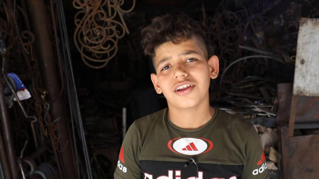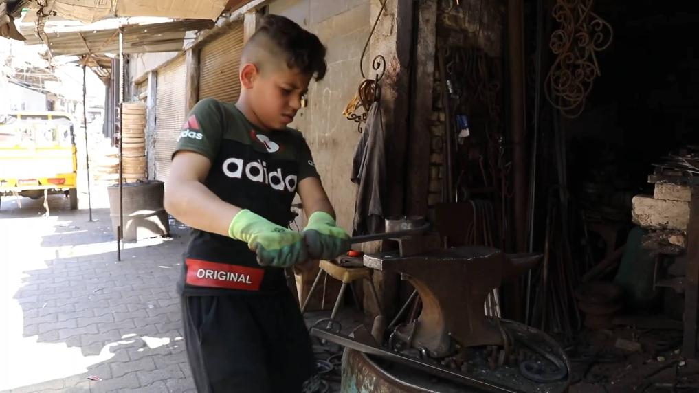 在伊拉克首都巴格达,14岁的萨贾德已在叔叔家的铁匠铺工作数年。