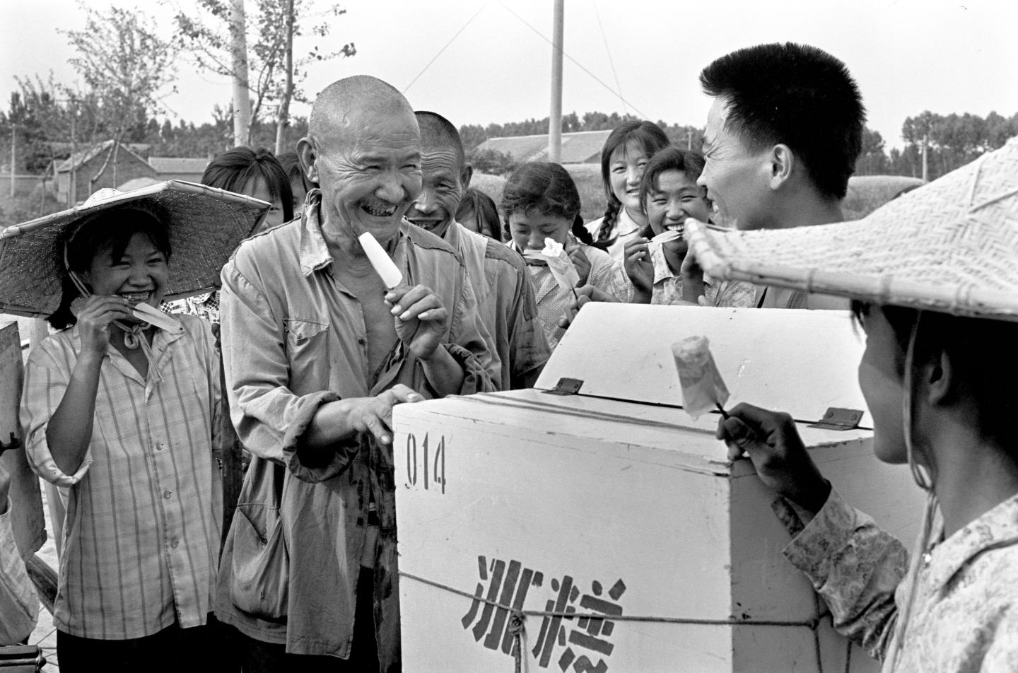 1981年7月,山东省邹县太平公社四大队办起冰糕厂,在赤日炎炎的酷暑期把冰糕送到田头地边,深受社员欢迎。