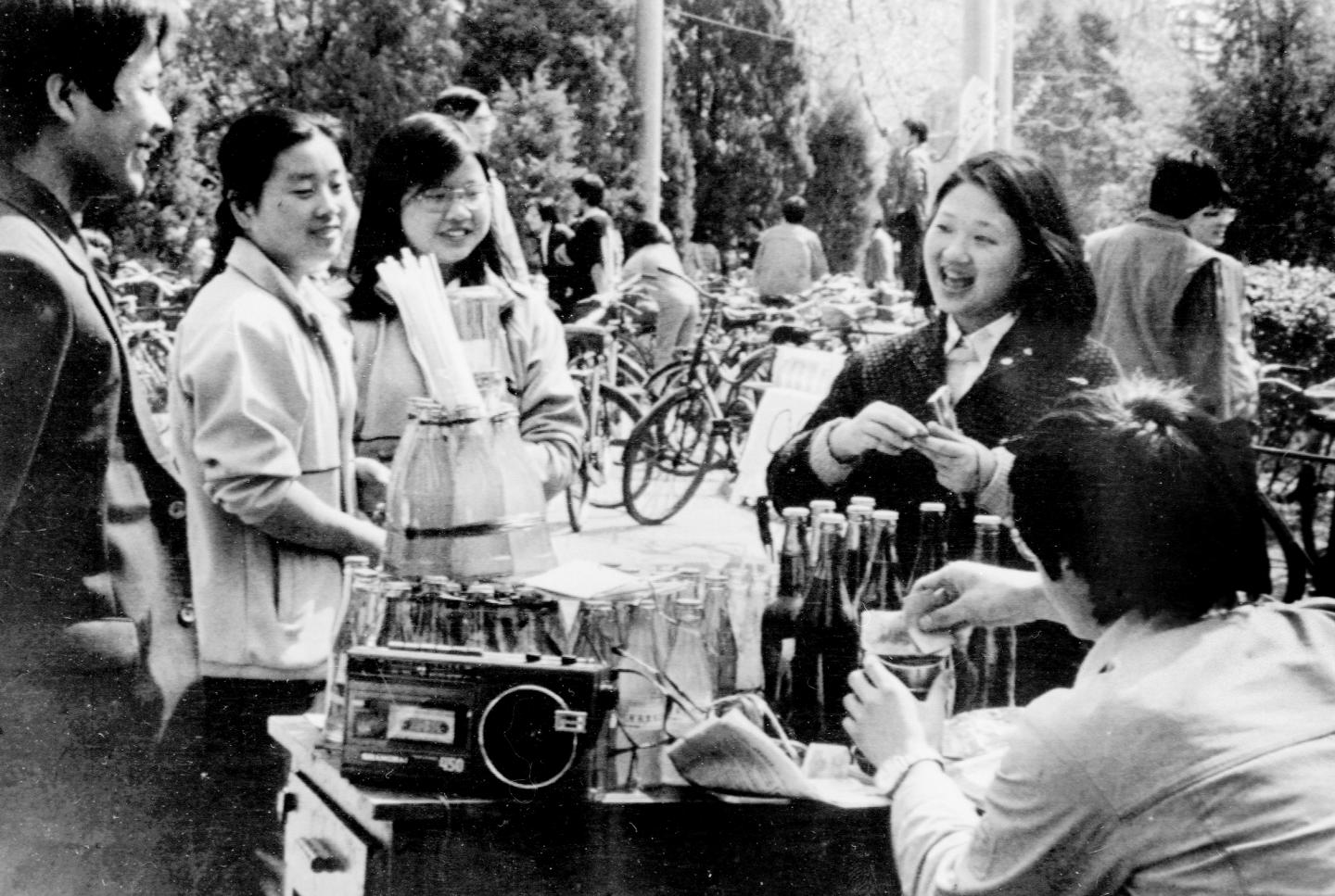 1988年,南京大学几个学生在校园里叫卖汽水。