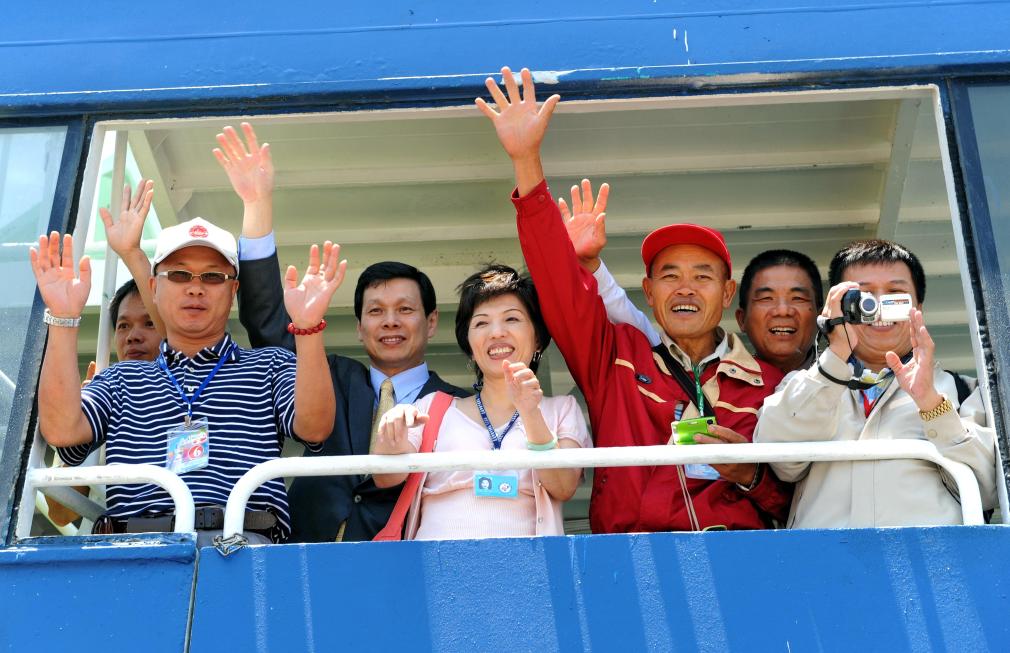 2009年5月15日,350名台胞乘坐“海洋拉拉号”客轮从台中港直航福建湄洲岛谒祖进香,拉开了首届“海峡论坛”活动的序幕。新华社记者 张国俊 摄