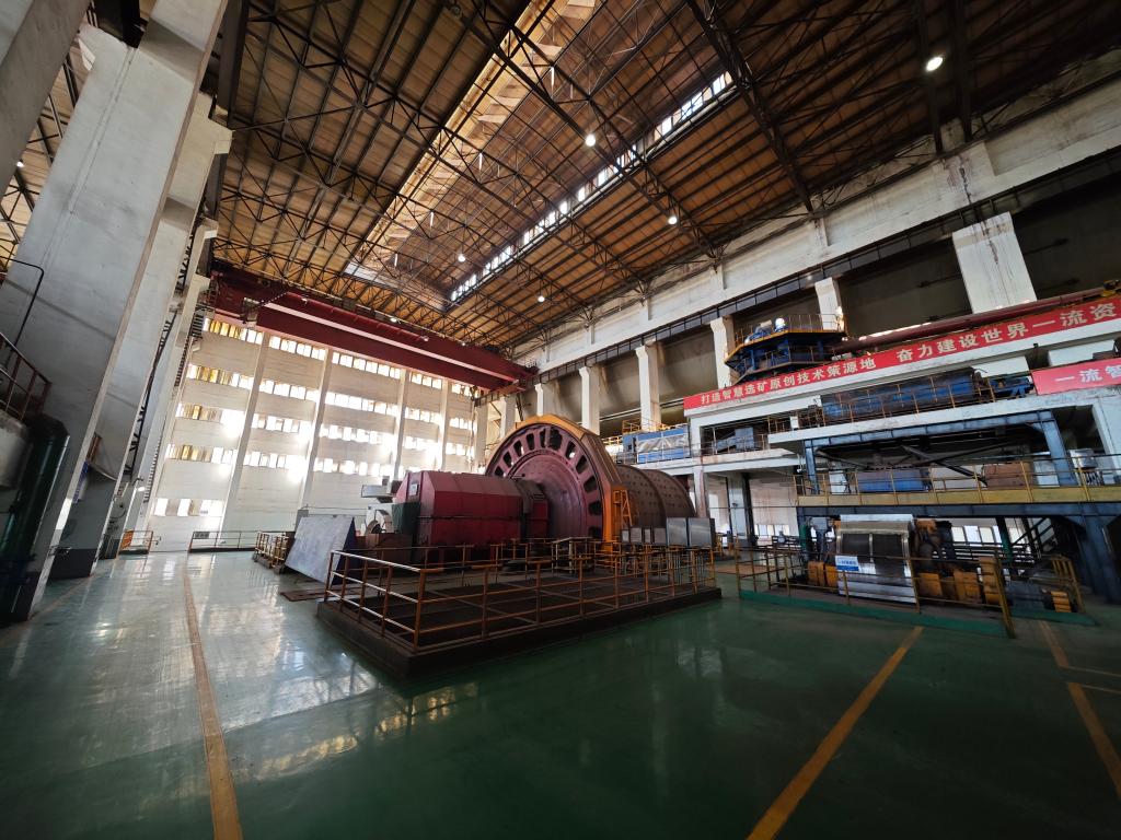 6月15日,关宝山矿山磨磁黑灯工厂里正在运转的球磨机。新华社记者李钢 摄