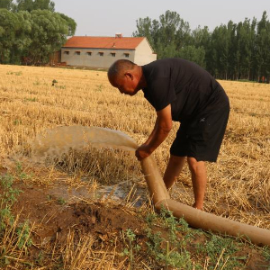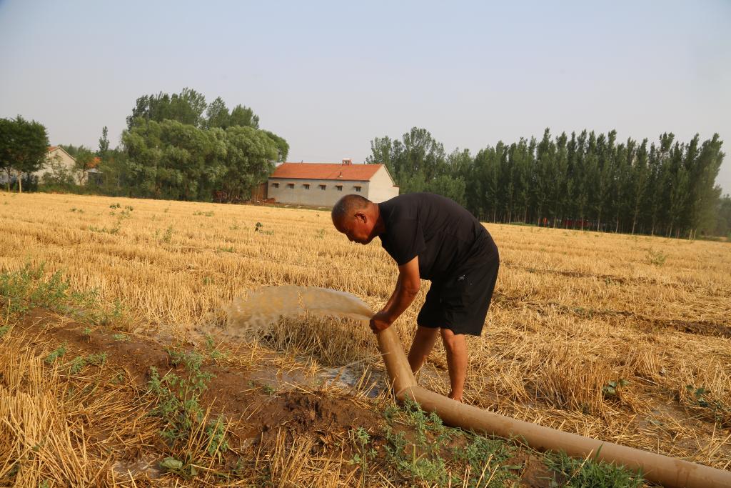 烈日当头,在山东滨州市阳信县洋湖乡冯家村,甘洌的清水汩汩流进农田。干枯的麦茬间,新播种的玉米苗抽出不少新叶。“我昨天浇了66亩地,还有3天就能全部浇完。多亏当地组织打井抗旱,让刚播种的玉米及时‘喝上了水’。”冯家村农户冯梅胜说。