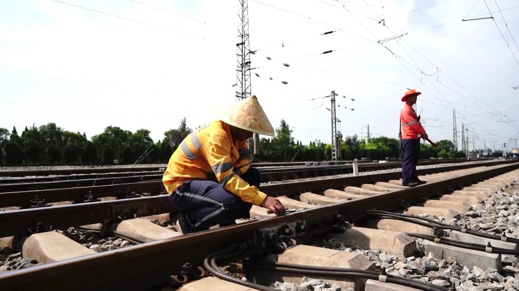京沪高铁是我国“八纵八横”高铁网主通道之一。面对持续高温天气对铁路线路防胀工作带来的“烤”验,国铁济南局的线路工人们加强了对京沪高铁沿线的检查维护,确保铁路运输安全畅通。