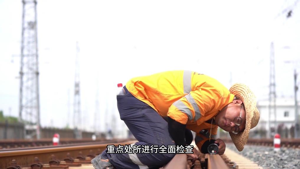 正午时分,济南西站的气温接近40摄氏度。为了应对胀轨风险,国铁济南局工务段的线路工人们来到防胀工作重点地段,加强对无缝岔区、股道、绝缘设备以及小半径曲线等关键部位的检查。