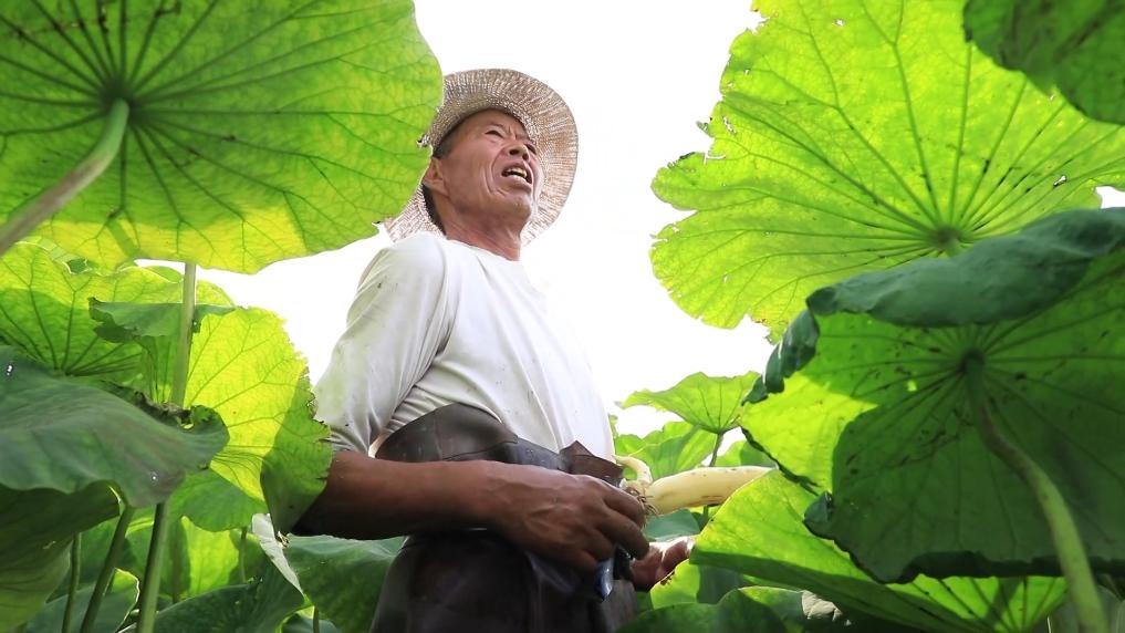 在山东省淄博市桓台县起凤镇,藕塘中碧荷如盖,马踏湖特产白莲藕的头茬嫩藕即将收获。任何美味,都不是轻易所得。对藕农宋呈现来说,这是一年中最热的季节,也是他最忙碌的季节。
