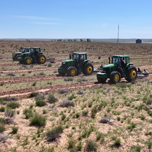 牵引播种机在杭锦旗防沙治沙项目区种柠条。新华社记者李云平 摄