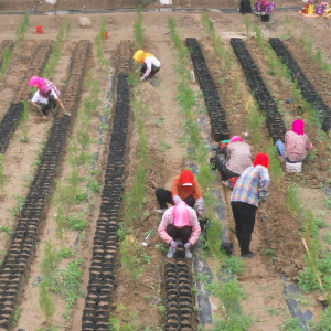 内蒙古乌拉特后旗新红林业管护中心正在育苗。新华社记者 李云平 摄