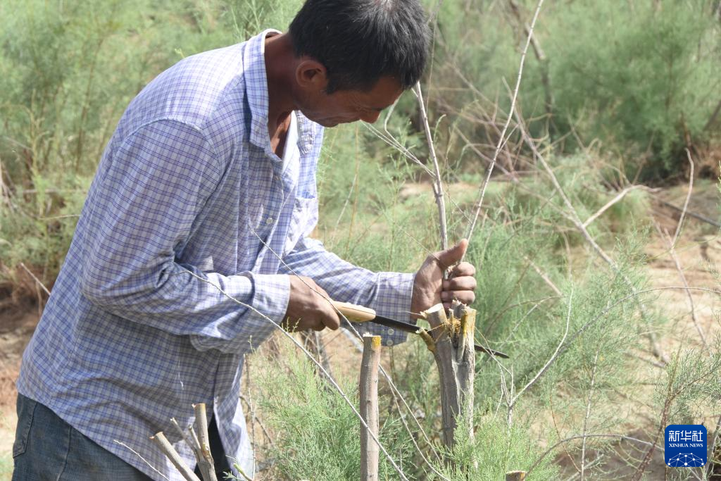 锯下来的柽柳树枝也不会被浪费。赵广兴说,一部分枝条将被制作成生物肥料,还有一部分被挑选出来,剪切成15厘米长的小段用于扦插育苗,“在滴灌的滋润下,5个月后它们就能长到2米高,可以为今后造林提供种苗。”