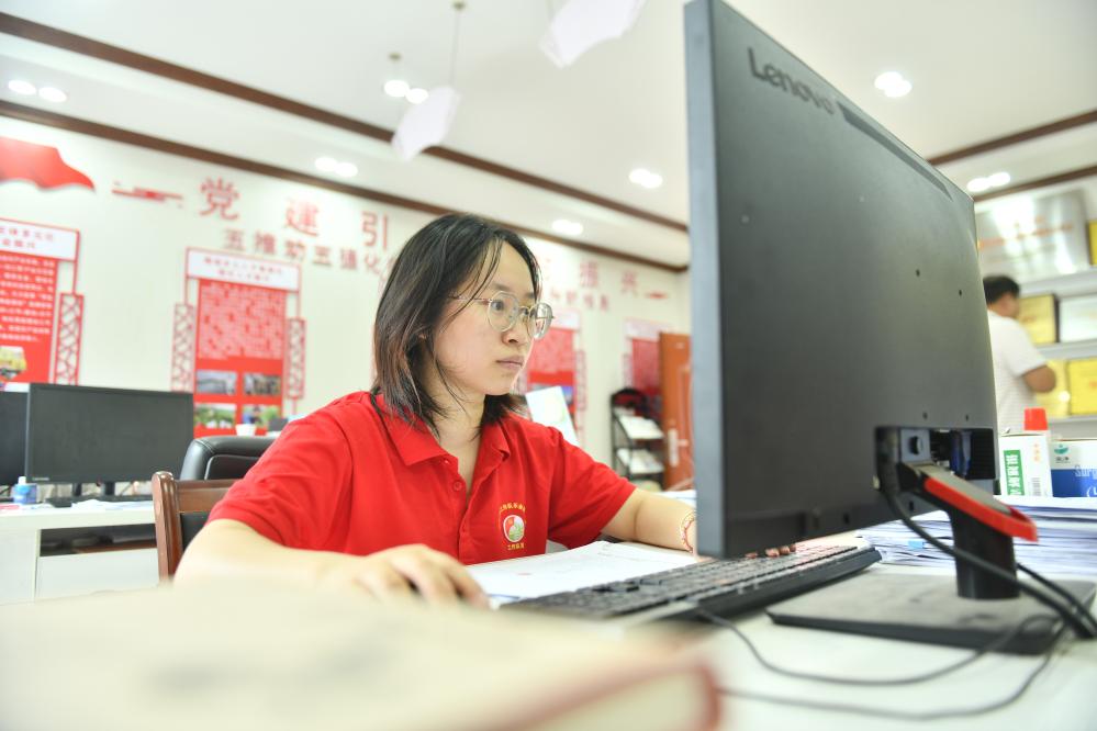 在百坭村村委办公室,24岁的村委会主任助理黄华在工作(6月11日摄)。