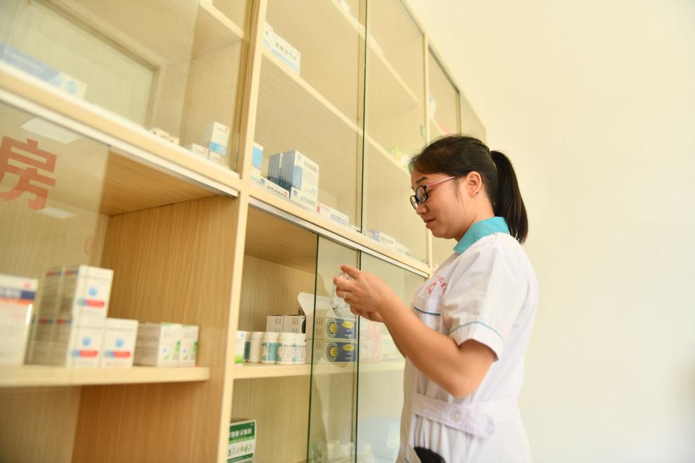 在百坭村卫生室,34岁的罗秀英整理药品(6月11日摄)。2023年,罗秀英从县城回到家乡成为一名乡村医生。