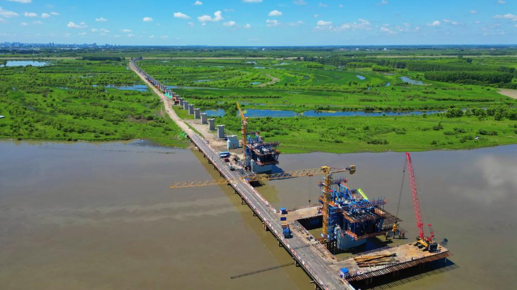 永兴呼兰河特大桥施工现场。(哈尔滨局集团有限公司供图)