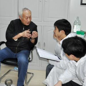王家骐(中)和学生们讨论研究课题(2011年1月24日摄)。新华社发(林宏摄)