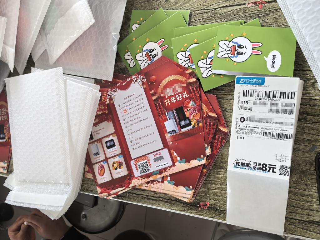 去年12月,太原市的李女士收到一个陌生快递,里面除了一个小的记事本外,还有两张小卡片,一张是某电商平台的宣传页,另一张是刮奖卡片。卡片上宣称为回馈老用户特举行抽奖活动,奖品从手机、扫地机器人、洗碗机、暖手宝,到一份当季水果不等。