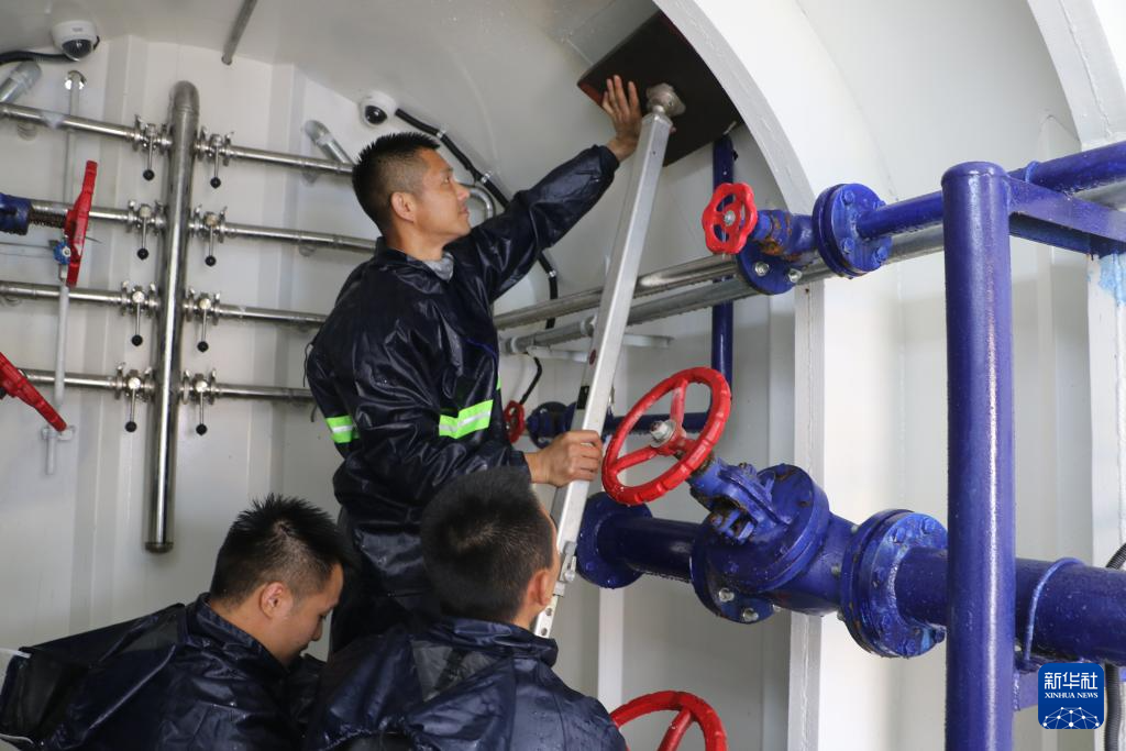 海军某潜艇支队官兵进行损管灭火训练(资料照片)。新华社发(茆琳摄)