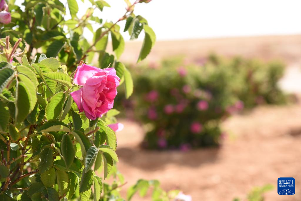 当下正值马拉哈镇玫瑰采摘季。随风摇曳的玫红色花朵连片装点着花田,在苍黄的沙土上绽放出靓丽生机。置身花田中,香气盈鼻,馥郁围绕间又闻蜂鸣阵阵。