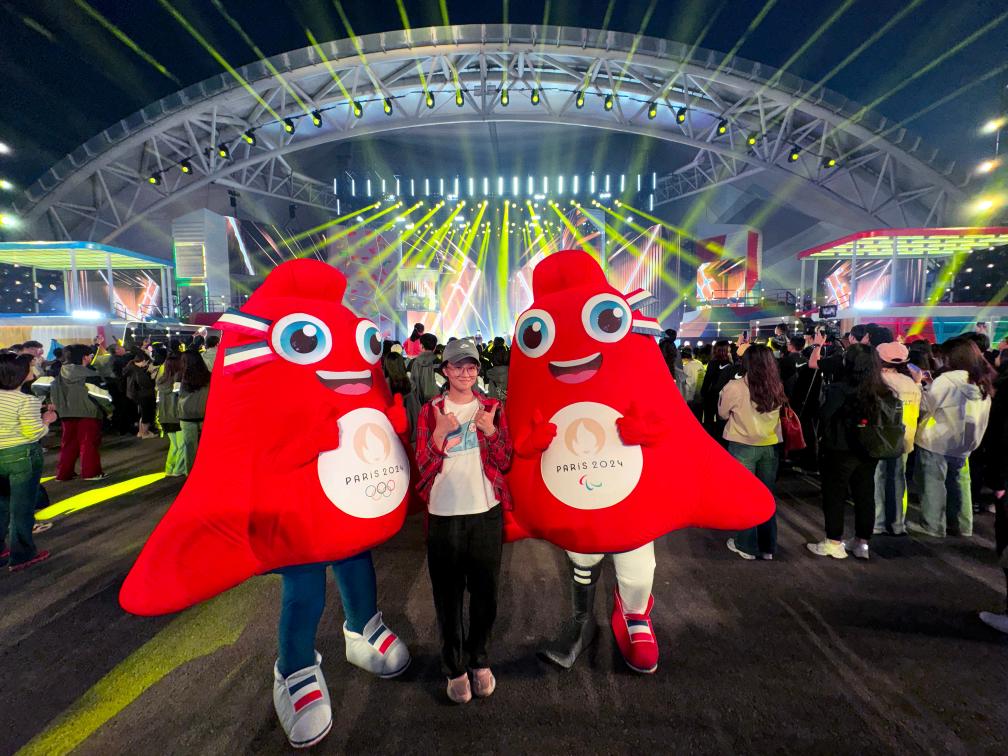 ↑5月16日,吴敏霞与巴黎奥运会、巴黎残奥会吉祥物合影。