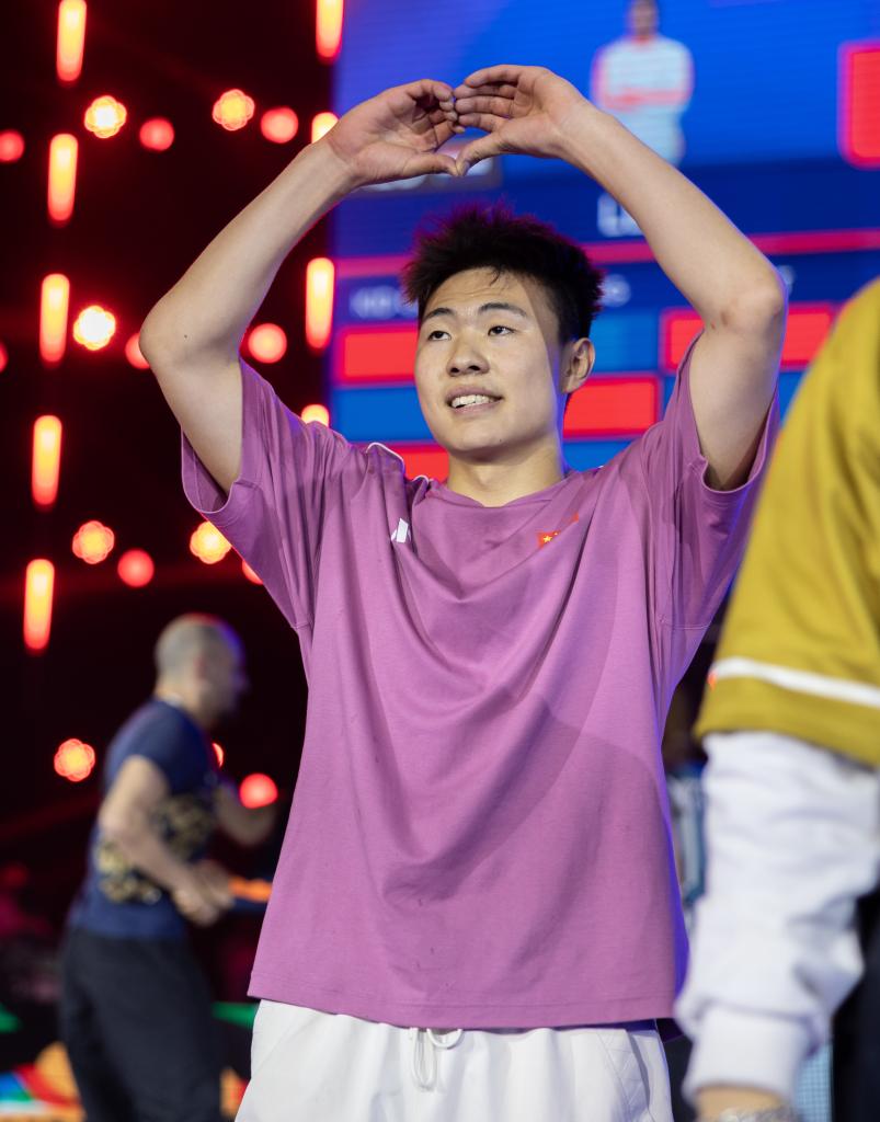 ↑5月19日,亓祥宇在决赛后向观众致意。当日,在巴黎奥运会资格系列赛上海站霹雳舞男子决赛中,中国选手亓祥宇1:2不敌荷兰选手迪乌夫,获得亚军。
