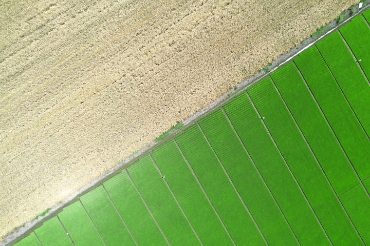 2024年6月13日拍摄的四川省绵阳市安州区塔水镇双埝村的水稻制种现代农业园区(无人机照片)。新华社发(包成 摄)