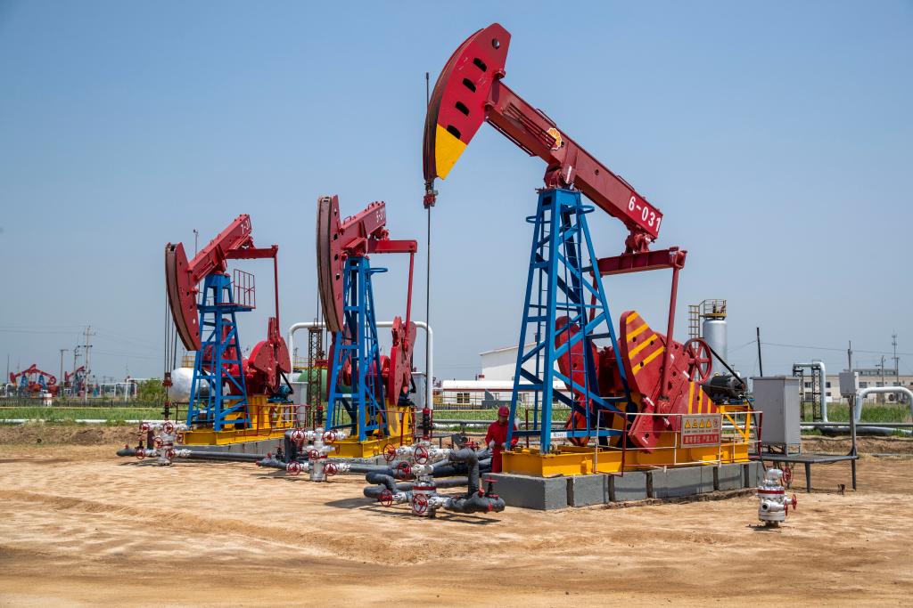 这是6月18日在位于盘锦市的辽河油田欢喜岭采油厂拍摄的抽油机。新华社记者 李旭伦 摄