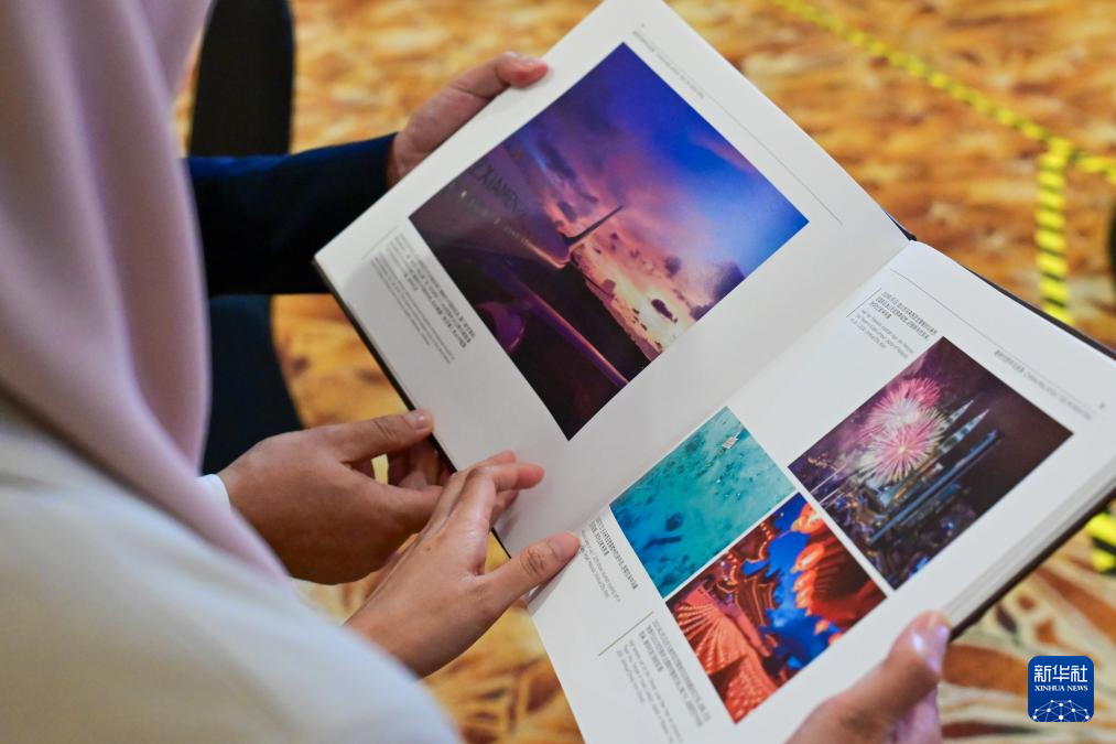 6月19日,在马来西亚首都吉隆坡举行的中马建交50周年图片展上,来宾在观看相关主题照片编纂成的画册。新华社记者 朱炜 摄