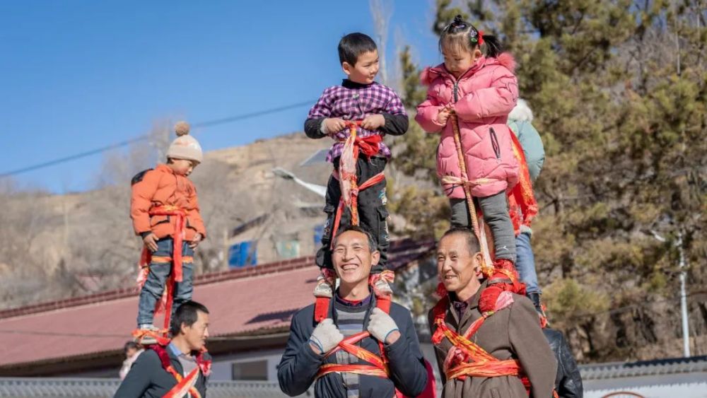 宁夏固原市隆德县观庄乡阳洼村村民在排练扛社火。新华社发(唐成卓 摄)