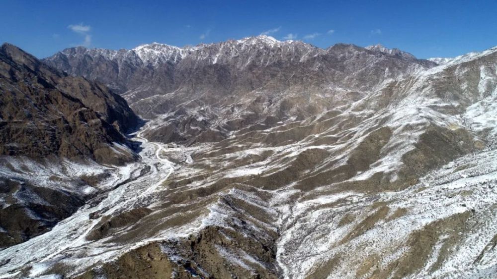 在宁夏贺兰山苏峪口国家森林公园拍摄的雪后贺兰山(无人机照片)。新华社记者 王鹏 摄
