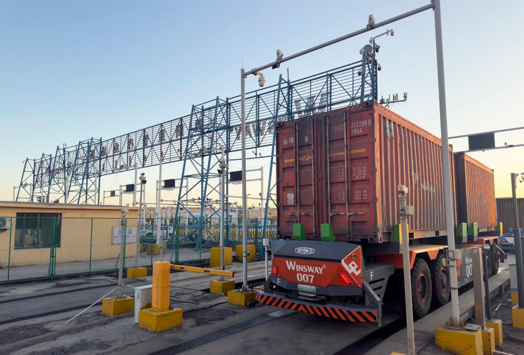 记者现场看到,来自蒙古国的AGV无人驾驶车排队入境甘其毛都口岸,海关智能卡口自动读取、核验车辆舱单和载货清单电子数据,并在30秒内抬杆放行。呼和浩特海关所属乌拉特海关关长尚贵民说:“甘其毛都口岸跨境无人运输通道贯通后,通关时效更快,跨境运力更大,智能化应用水平也更高,进一步完善口岸功能定位,推动通关过货提速扩量。”