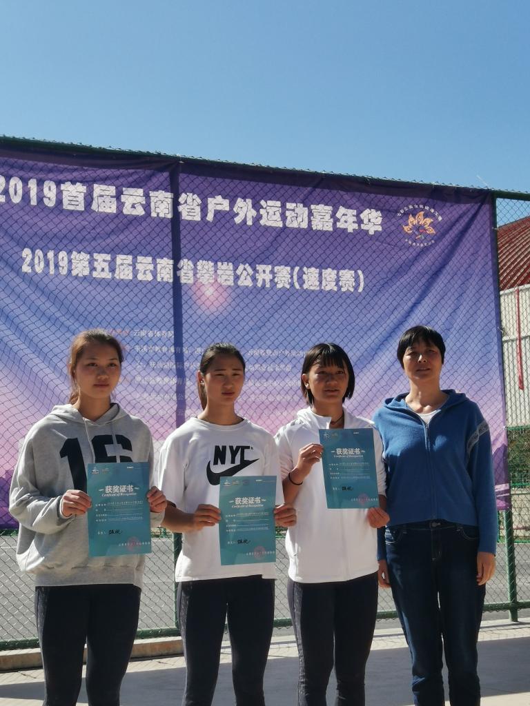 汪生艳(左二)在2019年云南省攀岩公开赛中荣获“速度”“难度”第一名。