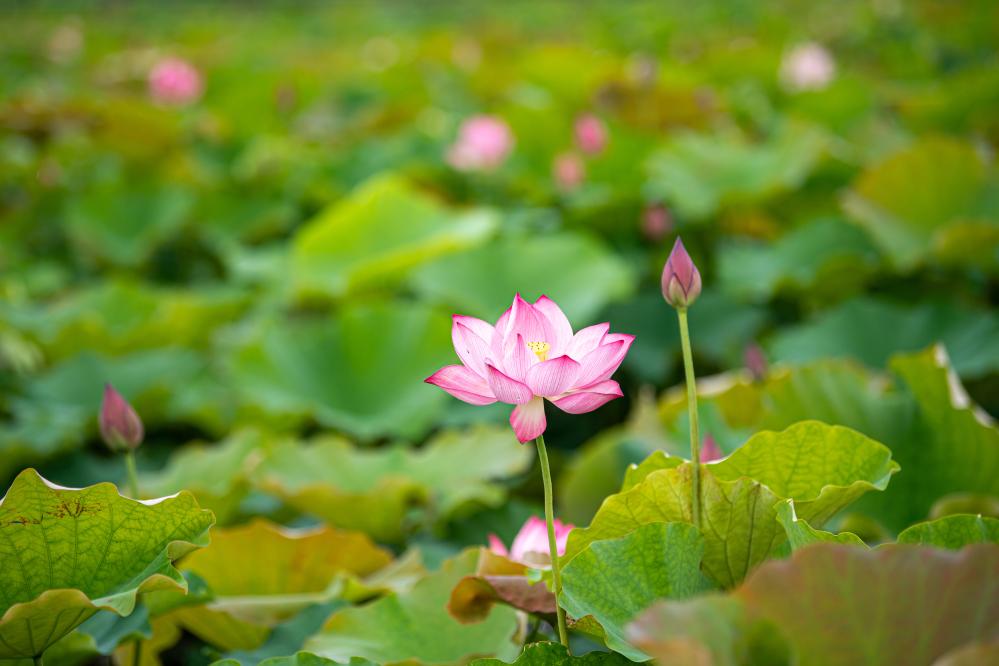 这是6月20日拍摄的宁波市江北区外漕村百亩荷田内的荷花。新华社记者 江汉 摄