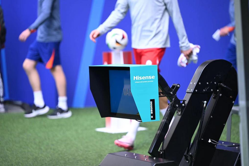 有不少球迷发现,每当比赛进行视频助理裁判(VAR)回看时,屏幕上都有中国品牌海信的标志。