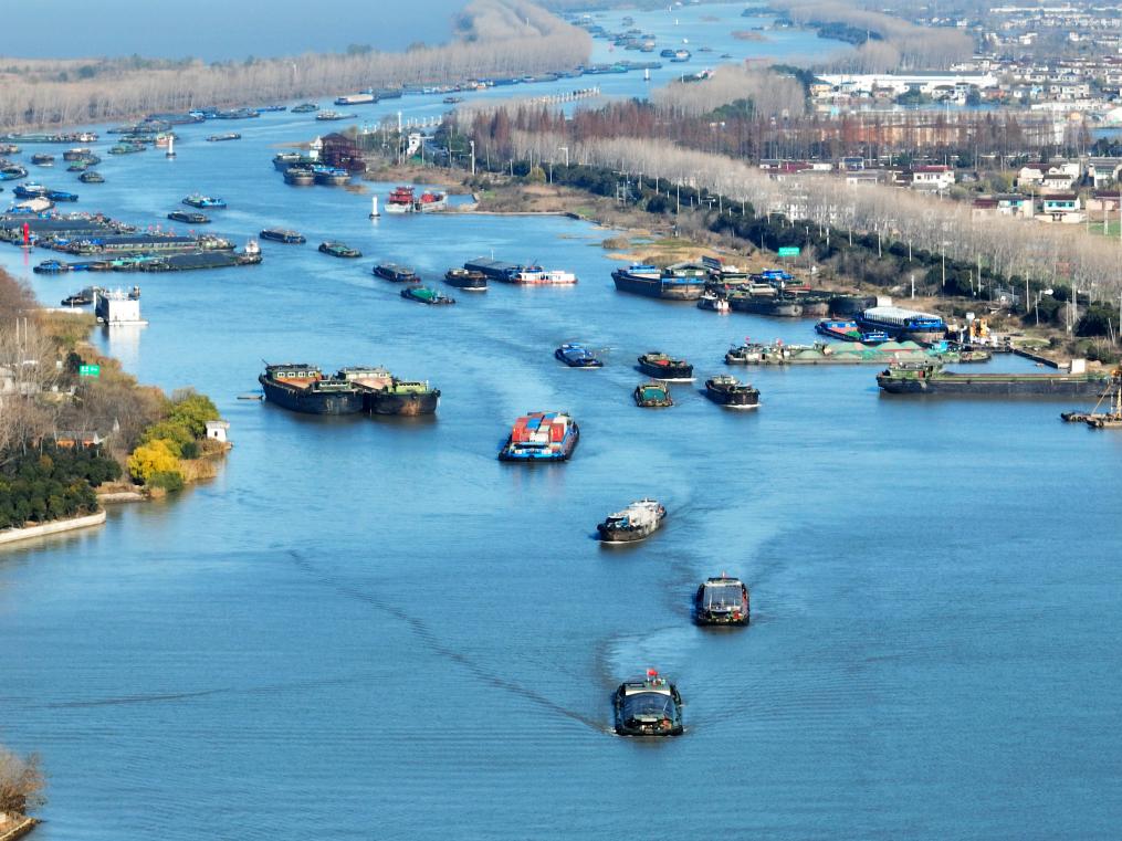 2022年12月18日,货船行驶在京杭大运河江苏扬州段。